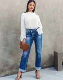 Adquira já nossa Calça Jeans Feminina de Bainha Moderna com Ajuste Solto e eleve seu estilo com um toque de modernidade!