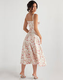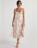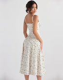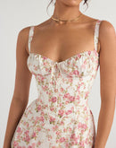 O destaque deste vestido são os delicados padrões florais que adicionam um toque romântico e fresco ao visual. Com corte lateral e alças finas, este vestido combina beleza e conforto de forma única.