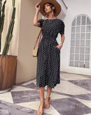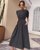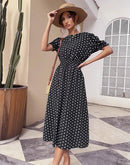 Elegância e Estilo em Poás: Vestido Midi Estampado Poá Cintura Elástica Manga Curta