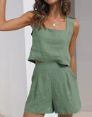 Adquira já o seu Conjunto Feminino Short e Regata Gola Quadrada e esteja pronta para arrasar nos dias de verão com estilo e conforto!